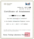 ISO 9001 내부심사원 수료증 & 합격증 |